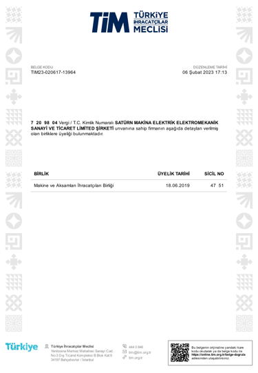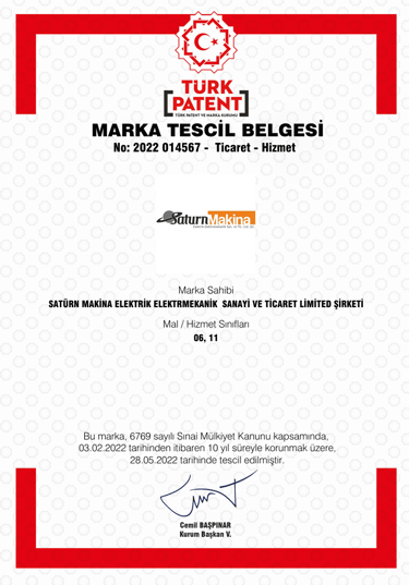 SATÜRN MAKİNA ELEKTRİK ELEKTROMEKANİK SANAYİ VE TİCARET LİMİTED ŞİRKETİ